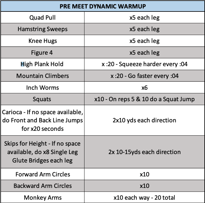 Practices will vary seasonally, but traditionally this group will have nine practices per week with doubles on Monday, Wednesday, and Friday.